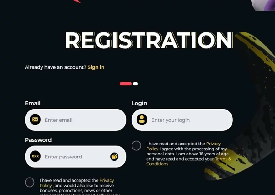 Registering at Boomerang Casino is very simple. Just press the "SIGN UP!" button. in the top right corner of the gambling website and fill out the registration form.