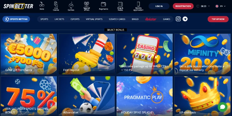 From the very beginning of your visit to Spinbetter, you have a choice. Right at the header of the page, you can decide whether you are interested in casino or sports betting. All casino enthusiasts are guaranteed to get their hearts pumping when they come across a wide selection of games and promotions in the casino section.